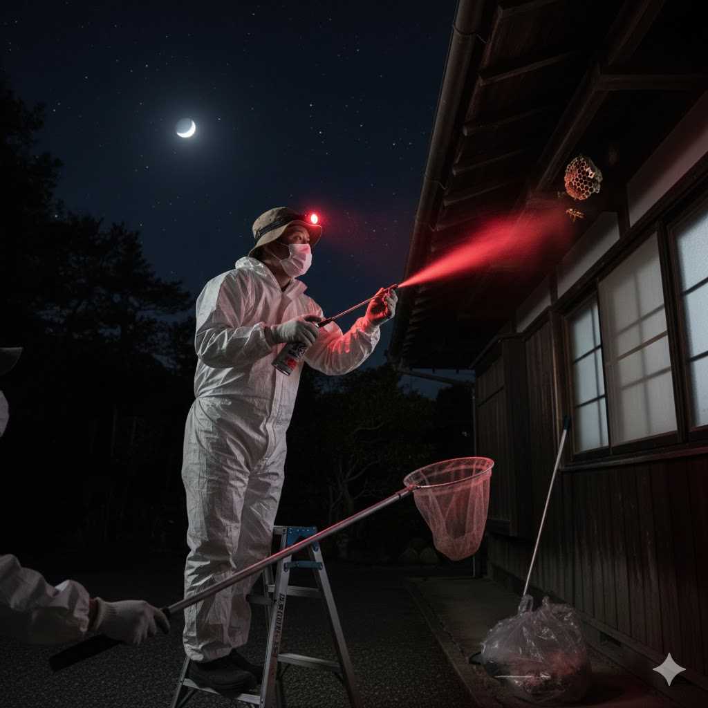 駆除する時間は、必ず「日が沈んで2〜3時間たった夜(20時〜21時以降)」にしてください。