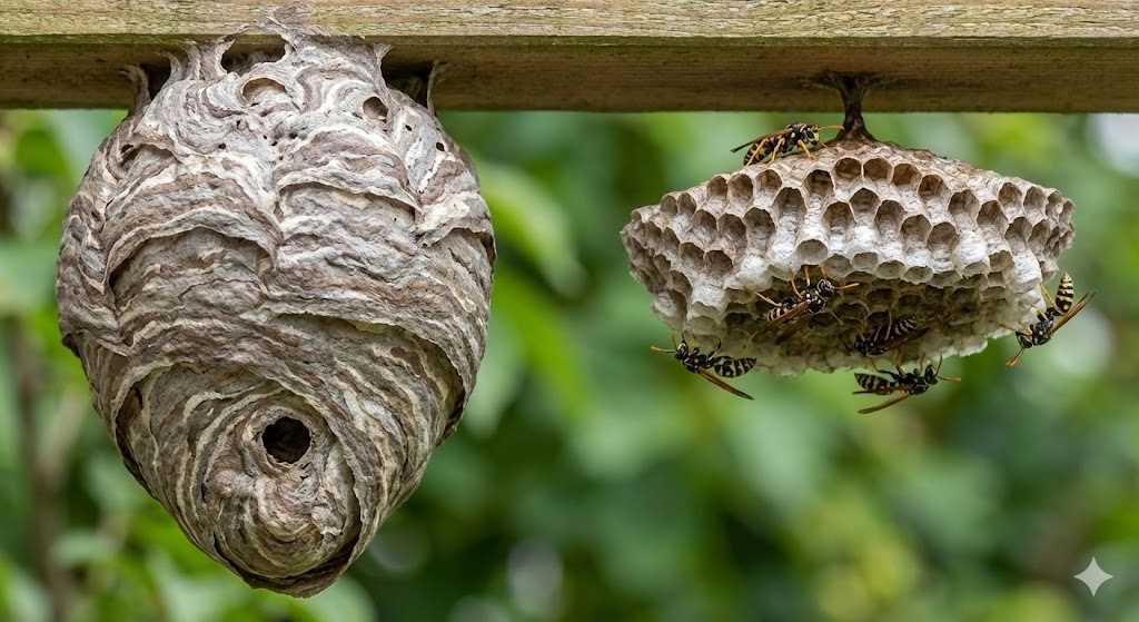 アシナガバチとスズメバチを見分ける決定的なポイント、それは「巣の外側が皮で覆われているかどうか」ですよ。