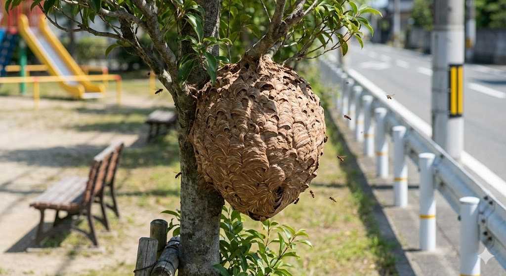 自宅の敷地内ではなく、近所の公園や街路樹などの「公共スペース」で蜂の巣を見つけた場合は、個人で対処しようとせずに、速やかに管理者へ連絡してください。