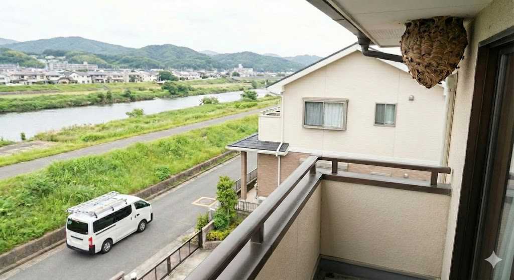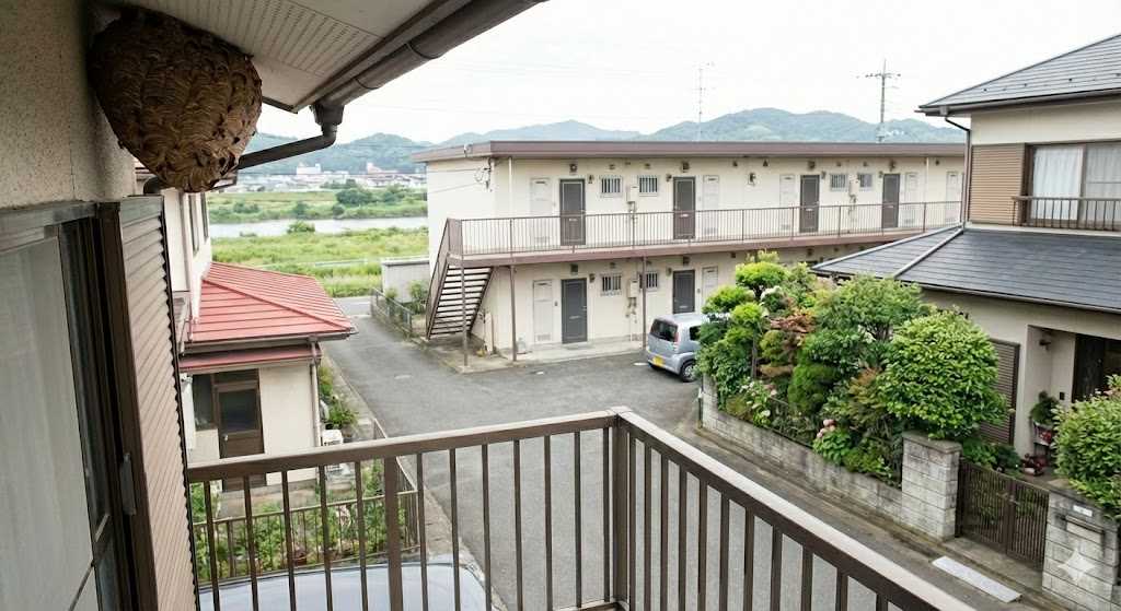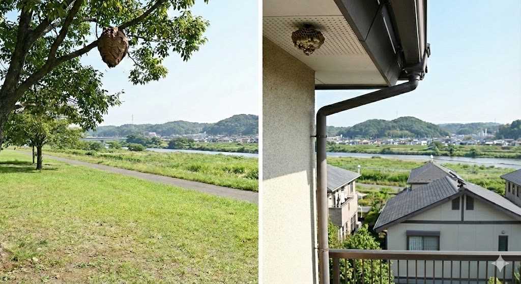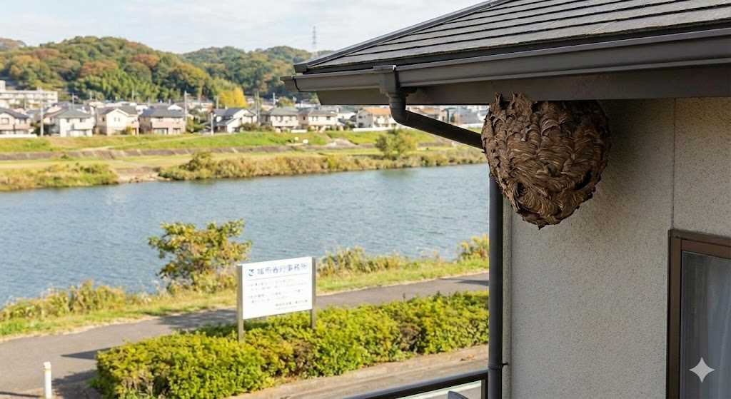 性格は比較的おとなしく、巣を直接刺激しなければ襲ってきません。ただし、布田や和泉などの住宅地では、洗濯物に紛れ込んだり、ベランダなど生活動線上に巣がある場合は、うっかり触れてしまうリスクがあるため駆除を検討したほうが良いでしょう。