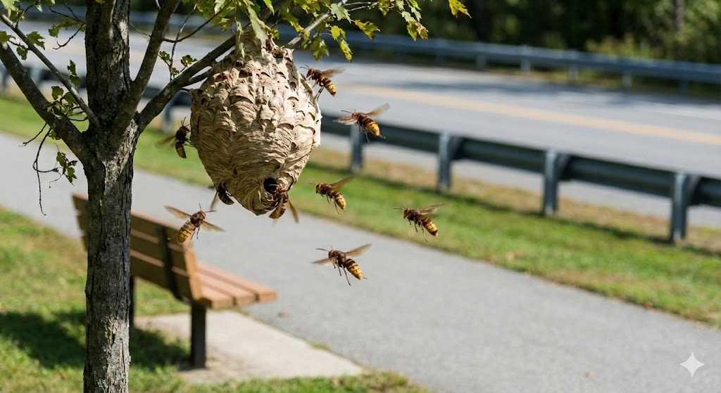 自宅の敷地内ではなく、登戸小学校の通学路や、子供が遊ぶ稲田公園、電柱などに蜂の巣を見つけた場合はどうすればよいでしょうか。