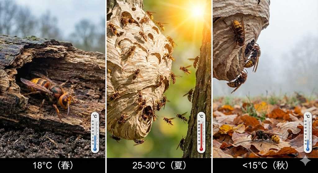 ここでは、気温の上がり下がりがスズメバチの活動時期にどう影響するのか、そして季節ごとに蜂がどのような行動をとるのかを、より詳しく、分かりやすくお話ししていきますね。